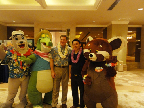 为了让华中地区的游客更好地了解海洋公园,香港海洋公园总裁苗乐文(Mr. Tom Mehrmann)先生及副总裁李绳宗(Mr. Matthias Li)先生亲临长沙,于2010年5月26日上午11时30分,在长沙运达喜来登酒店四楼宴会厅A厅举行了媒体推介会及午宴,邀请了媒体朋友及旅游业同行参与。担任此次活动同声传译和交替传译工作的是我公司翻译部专业同声传译员。我公司培训部三位学员到场进行了观摩学习,分别是12期学员胡秋花、26期学员胡水及27期学员俞海鹏。