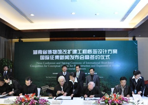 2010年12月10日,湖南省博物馆改扩建工程概念方案国际征集新闻发布会暨签约仪式在长沙举行,来自英国扎哈·哈迪德建筑事务所、德国GMP建筑事务所、意大利n!studio建筑工作室、法国AS建筑工作室、日本矶崎新建筑事务所+中国中央美术学院、美国惟邦设计集团+ARUP(奥雅纳工程咨询有限公司)、湖南省建筑设计院等7家国内外著名的建筑设计公司及设计师应邀参加此次竞赛。